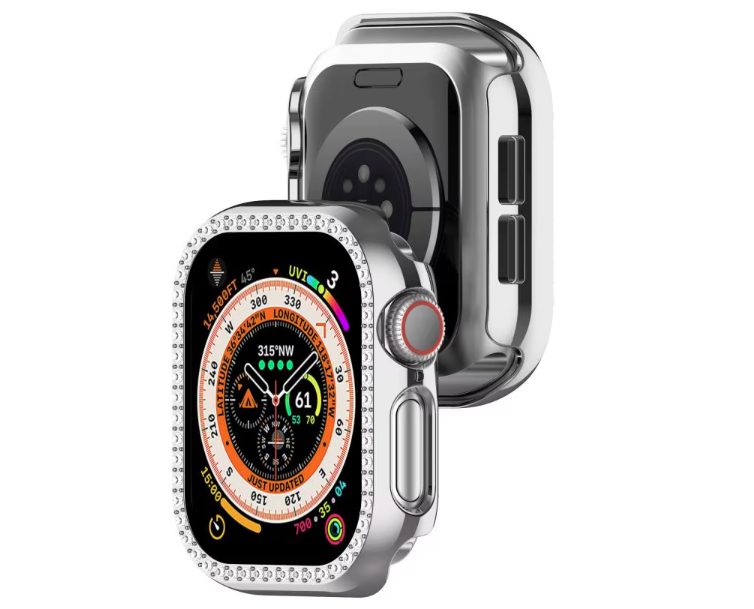 Védőkeret kövekkel Apple Watch 10-hez, 42 mm - Ezüst