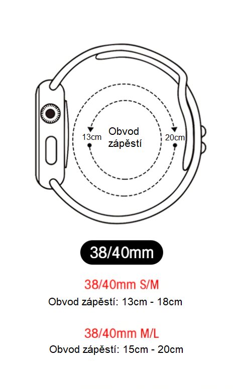 Kombinace částí S a M je vhodná pro obvod zápěstí: 13 - 18 cm
