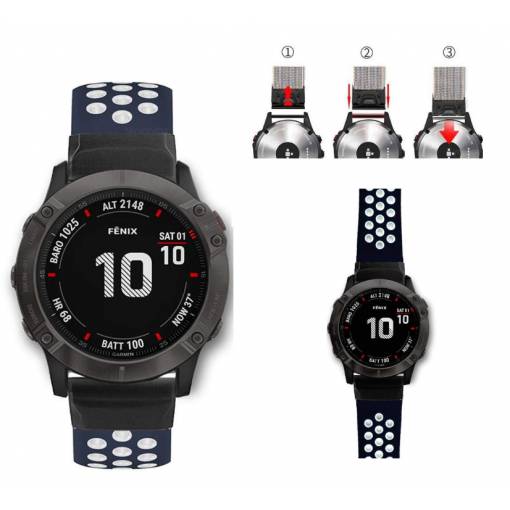 eses Szilikon perforált szíj Garminhoz - Kék fehér, QuickFit 26mm
